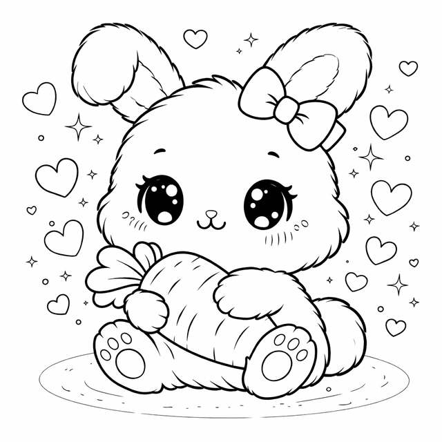 Kawaii Bunny - Coloring Page