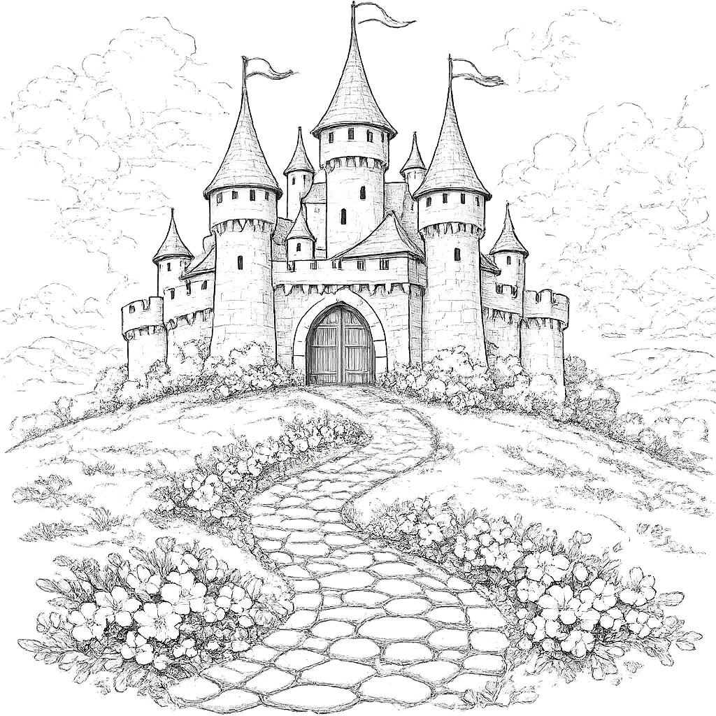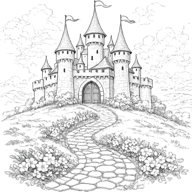 Fantasy Castle - Coloring Page