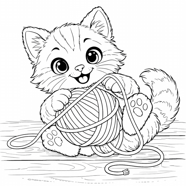 Playful Cat - Coloring Page