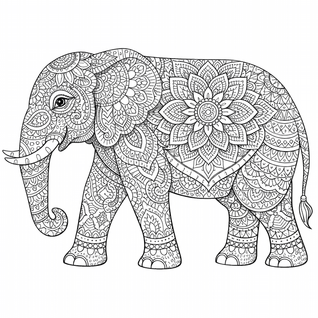 Elephant Pattern - Coloring Page